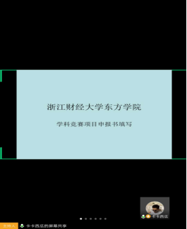 会上,罗老师首先介绍了公司学科竞赛项目的发展历程和历年成绩,并分析了金融与经贸分院近年学科竞赛开展状况和成果。然后,罗老师讲解了学科竞赛级别划分、竞赛和分院专业设置的关系、竞赛立项评审要求等竞赛申报背景。最后,罗老师就学科竞赛申报书撰写、开展流程和各环节注意事项展开了详细介绍,并对金融与经贸分院2020年的学科竞赛工作进行展望。