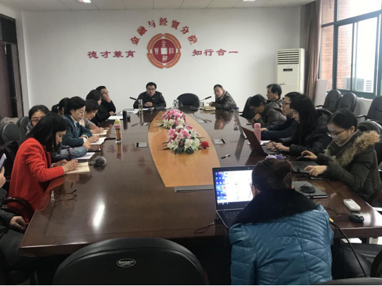 12月24日下午,金融与经贸分院2019-2020学年第一学期期末全体教职工会议于1号教学楼506会议室召开,分院经理李忠、党总支书记黄文平、副经理胡军辉及分院全体教师参加此次会议。本次会议由黄文平书记主持。
