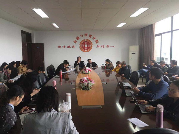 2018年11月6日,金融与经贸分院于1教506会议室召开期中教职工会议,分院名誉经理陈中放、经理李忠、党总支书记黄文平、副经理胡军辉以及全体教师参加此次会议,本次会议由黄文平书记主持。