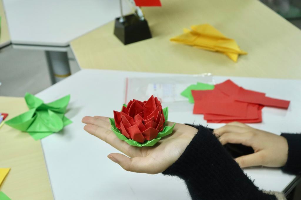 师生党员们一起参与制作廉洁手工折纸,并分享自身对于廉洁文化的认识。通过手工折纸形式,将折纸艺术和廉政文化相结合,以“莲花”为题材,为员工党员上了一堂生动新颖的廉政主题教育课。莲,笔直洁净地树立与水中,源于其廉洁向上之根。在手工折莲花的过程中,师生们互相分享了自身对于廉洁自警自励的看法,在潜移默化中提高了对清正廉洁的意识。