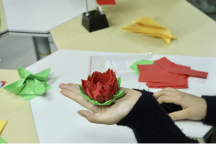 师生党员们一起参与制作廉洁手工折纸,并分享自身对于廉洁文化的认识。通过手工折纸形式,将折纸艺术和廉政文化相结合,以“莲花”为题材,为员工党员上了一堂生动新颖的廉政主题教育课。在手工折莲花的过程中,师生们互相分享了自身对于廉洁自警自励的看法,在潜移默化中提高了对清正廉洁的意识。