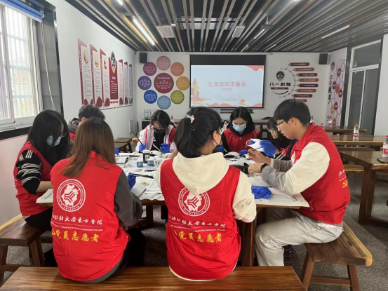 党员志愿者们在村民换下的旧瓦片上涂画廉洁廉政宣传画,通过手绘瓦片的形式,将绘画和廉政文化相结合,以“莲花”、“梅花”等为题材,上了一堂生动新颖的廉政主题教育课。一方面变废为宝,用带着新装的旧瓦再次装饰美丽的村庄;另一方面,更加坚定员工党员对清廉二字的深刻认识,进一步深化廉政教育、落实廉政建设。从东升村党员服务中心到田园地头,志愿者们将自己的作品放在沿途村庄中,途中师生们互相分享了自身对于廉洁自警自励的看法,在潜移默化中提高了对清正廉洁的意识。作为员工党员,我们应该认真贯彻落实党的二十大精神,心存敬畏,筑牢拒腐防变思想防线,加强自身修养,为实现中华民族伟大复兴而不懈奋斗。