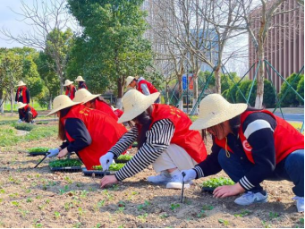 认真向后勤老师学习种植方式和技巧后,员工党员和入党积极分子个个热情高涨,戴上草帽、手套、工具和马鞭草苗,分工合作、互相配合,每个环节都做得很认真,充满着和谐互助的气氛,最终高效完成种植。