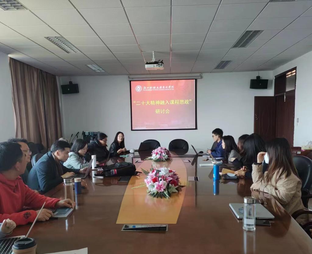 接下来刘睿伣、陈晓菲等思政项目负责人依次分享了各自对二十大精神的认识及申报课程思政的经验和方法,与会青年教师反响热烈,纷纷加入研讨。