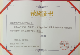 公司组队参赛获奖情况如下:省级二等奖2项,三等奖1项;国家级三等奖1项;优秀组织奖1项,王恩江等3位教师获得优秀指导教师荣誉证书。大赛“学、练、考、赛、证”五位一体融通,培养员工跨境电子商务基础认知、全流程多平台运营、企业决策经营、大数据分析、跨文化商务沟通和创新创业等复合型能力,促进跨境电子商务专业教育迈进高质量内涵式发展新时代。欢迎同学们报名参加2023年比赛。