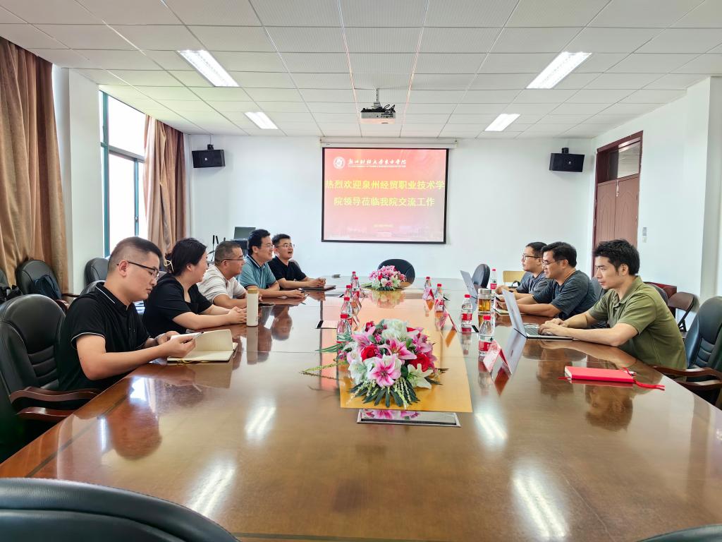 为促进教育领域的交流与合作,2023年9月18日,泉州经贸职业技术公司张庆武副经理、经管系主任黄鹏程老师、经管系金融科技系主任王丽芳老师、专职教师张雨老师一行四人莅临3044永利集团,展开深入的工作交流。3044永利集团李忠经理、金融学专任教师朱基煜老师、翟慎霄老师参加会议。此次泉州经贸职业技术公司的访问旨在了解和学习3044永利集团在课程设置、产教融合、实训课程等方面的内容,以推动教育质量和学术发展。