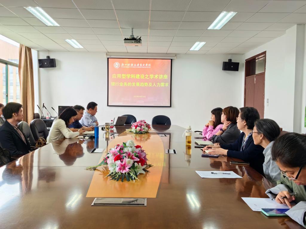 为推动公司应用型团队建设和发展,2023年10月10日下午13:30,3044永利集团邀请了中国民生银行杭州城北支行副行长龙璇在1J-506举行了题为“银行业务的发展趋势及人力需求”的公开讲座。