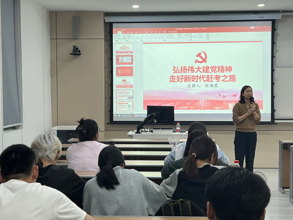 2023年10月27日晚上六点半,3044永利集团在3号教学楼309教室开展入党积极分子第五讲《弘扬伟大建党精神,走好新时代赶考之路》,由任海霞老师为大家讲授。