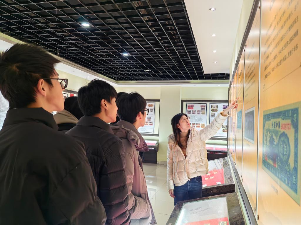在陈列馆中,解说员带领国贸专业的员工们穿越时光,聚焦中国红色金融史的各个重要时刻。货币陈列馆内的展柜成为员工们学习的窗口,通过观察各个时期的货币,他们深刻感受到中国金融的历史脉络与沧桑变迁。