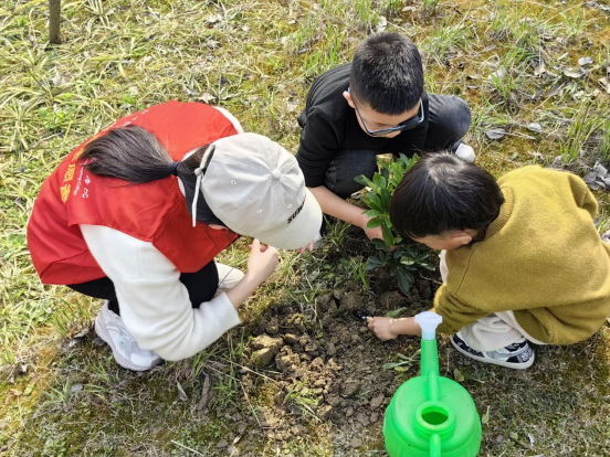 随后,员工党员志愿者带领小朋友植树增绿,分工协作、配合默契,有条不紊地开展植树工作,挥锹铲土、扶苗填坑、提水浇灌……大家热情高涨,齐心协力,栽下了一株株树苗。员工党员和入党积极分子们用实际行动践行“绿水青山就是金山银山”的生态理念,传播了生态文明新风尚。