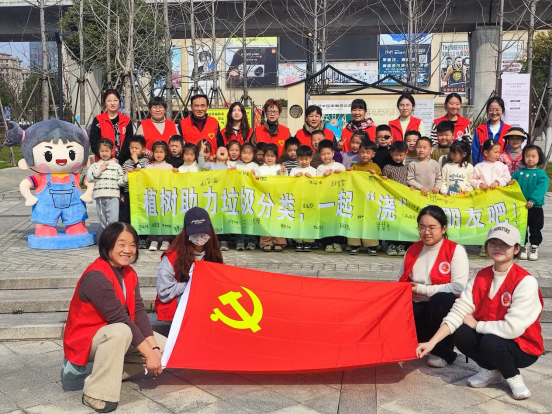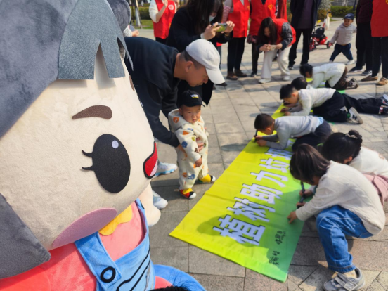 活动伊始,员工党员志愿者向小朋友们讲解此次活动的流程,强调了3月12日植树节以及生态环境保护的重要性,组织小朋友们在“植树助力垃圾分类,一起浇个朋友吧”宣传横幅上签名,让生态环境保护潜移默化般的刻入心中,润物无声,入脑入心,行成于思。