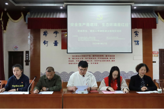 活动伊始,各个党支部代表对“安全生产是底线,生态环境是红线”这一议题进行发言,号召党员们切实担起责任,冲锋在前,通过党员带领带头,让党的旗帜在安全生产、生态环境斗争一线高高飘扬。