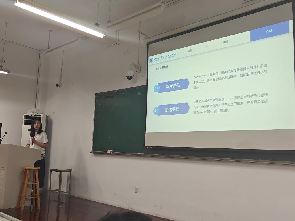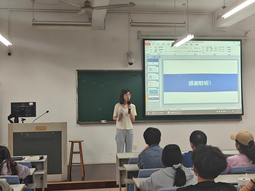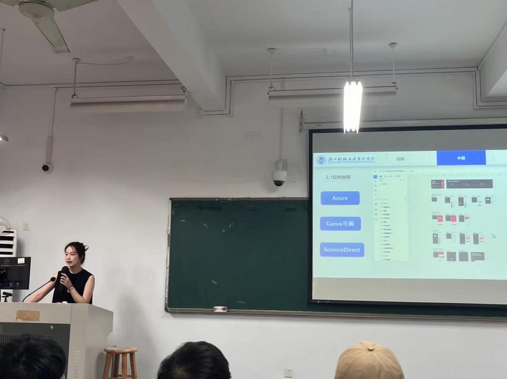 本次讲座特邀了去年在金融创新大赛中荣获省级二等奖的团队成员进行经验分享。郑力豪同学从选题、资料收集、文献撰写等多个角度进行了深入的交流;郑雅馨同学则从页面设计和软件应用方面,向同学们推荐了一些操作简便、功能强大的工具;沈依静同学则从答辩技巧出发,为在场的同学们提供了诸多宝贵的建议。