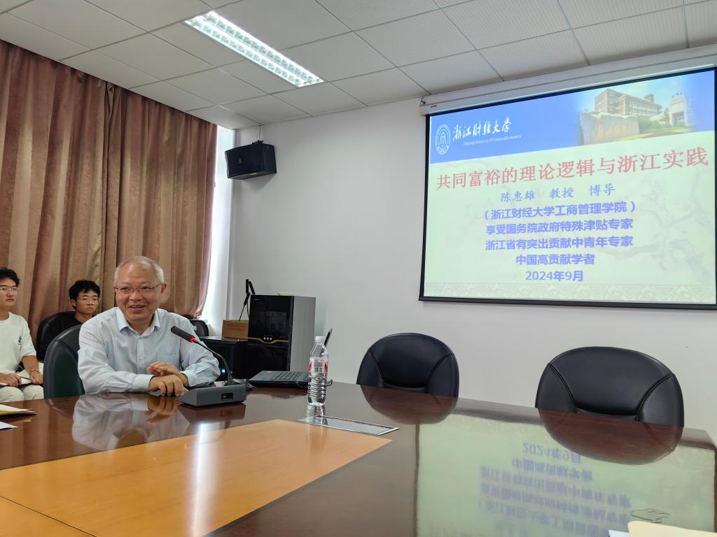 在近两个小时的交流过程中,陈教授不仅分享了理论知识,还结合浙江的实际案例,生动展现了理论与实践相结合的魅力。他强调,共同富裕不仅仅是经济上的目标,更是一种社会价值的体现,需要通过不断的努力和创新来实现。此外,他还鼓励在场的师生积极思考,勇于探索,为实现共同富裕贡献自己的力量。