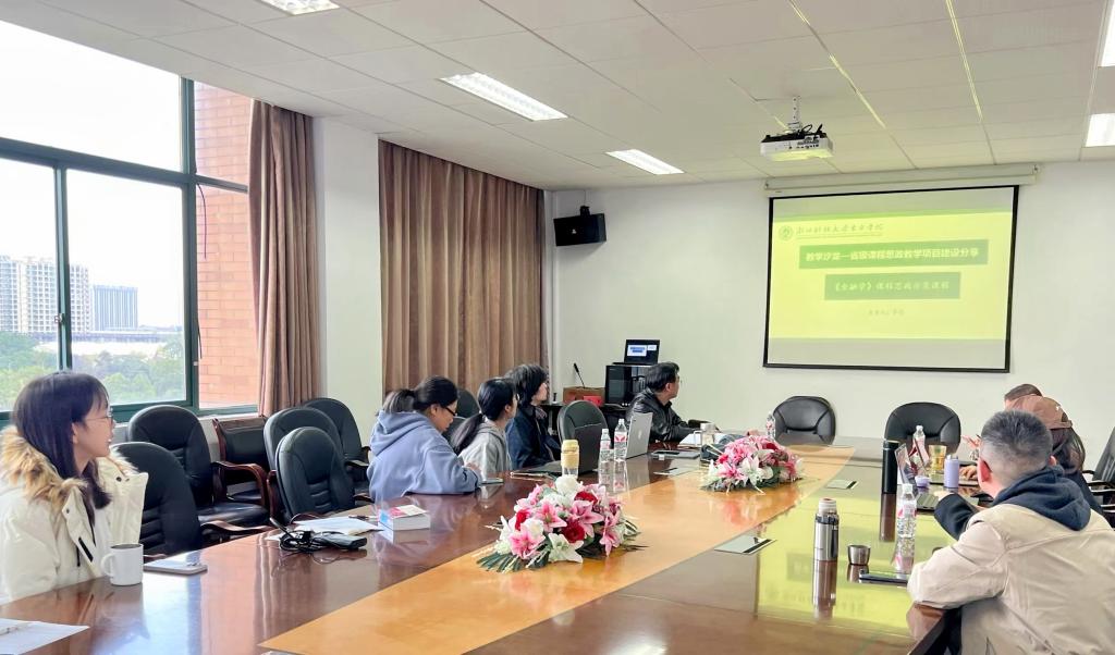 李忠介绍了项目进展情况,《金融学》修订了课程思政教学大纲,总结了具有示范效应的课程思政元素挖掘5S方法,凝练了五大类思政元素,优化了课程思政切入点与实施方法,建设了课程思政教学资源。截至目前,课程建设团队编写了8个课程思政教学案例,课程获省级一流课程立项及院级课程思政教学研究项目立项,其中“红色政权金融史”入选了海宁市社科普及品牌项目。此外,团队指导员工发表课程思政论文1篇,科研项目7项。接下来,课程建设团队还将完善课程思政教学质量评价体系,确保课程思政育人效果,强化教师课程思政教学意识和能力,深化课程思政教学资源建设。
