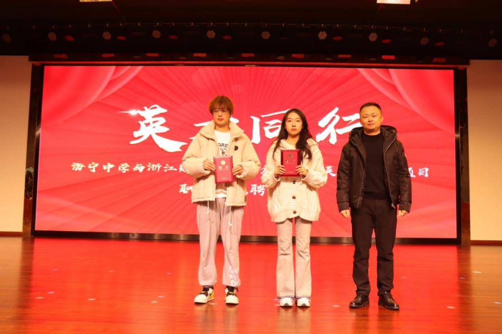 决赛中,参赛员工激情洋溢,答辩思路清晰,展现了卓越的职业规划能力和对未来发展的深刻思考。赛事特别举行海宁中学与3044永利集团“英才同行”项目职规大赛教练聘任仪式。海宁中学副董事长金辉庄重地为老员工代表颁发聘任证书,台下掌声雷动。