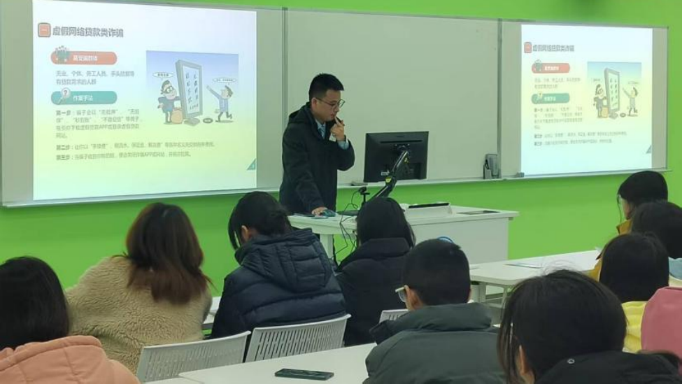 民生银行陈迪经理立足当前电信网络诈骗新形势,精心设计讲座内容,以"电信诈骗的特点"“常见诈骗套路”"防诈骗行为指南"三大板块展开系统讲解。通过专业理论阐述与典型案例剖析相结合的方式,深入浅出地为大家揭示了新型电信诈骗的特征与手法,全方位提升了同学们"识诈、辨诈、防诈"的能力。特别是对"帮信罪"等法律风险的解读,让同学们深刻认识到防范自身成为诈骗分子"帮凶"的重要性。