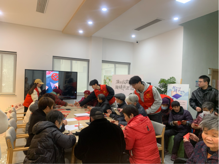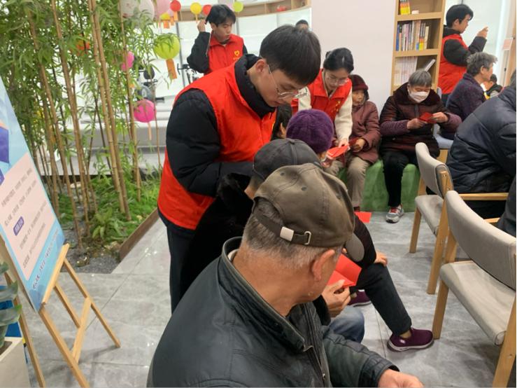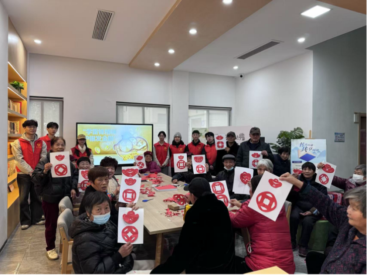 知识科普过后,是传统剪纸环节。志愿者们通过视频和现场示范如何剪出寓意吉祥的金元宝和铜钱。老人们边学习边创作,现场笑声不断。
