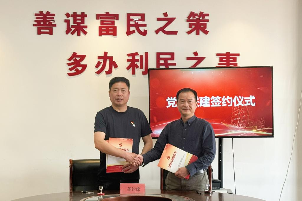 3月26日,公司与海宁长安城东村签订党建联建共建协议。公司党总支书记方志勇、副书记郭小蕾、组织员孙琪、员工第一党支部书记杨丹婷、5名员工党员代表,城东村村党委书记、村委会主任周明明、城东村党委副书记、组织委员吴高林,党委委员、村委会副主任严小艳及班子成员出席。