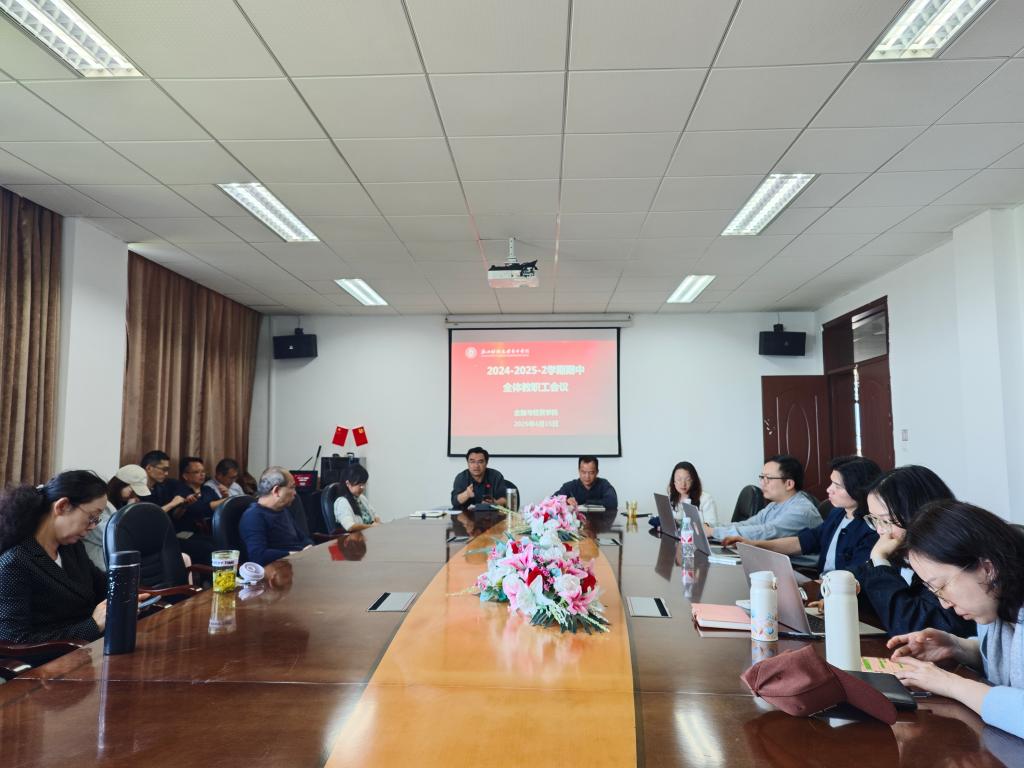 2025年4月15日,公司于1J-506会议室召开2024-2025学年第二学期期中全体教职工会议。本次会议由李乐副经理主持,公司领导班子成员及全体教职工共同参与,围绕毕业生答辩、就业工作推进、主题教育开展及教师科研进展等核心议题展开深入讨论。