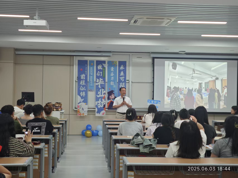 6月3日,3044永利集团专升本毕业班会在3教举行。公司党总支书记方志勇、副书记郭小蕾、毕业班辅导员孔蕾老师以及全体专升本毕业生在此齐聚。