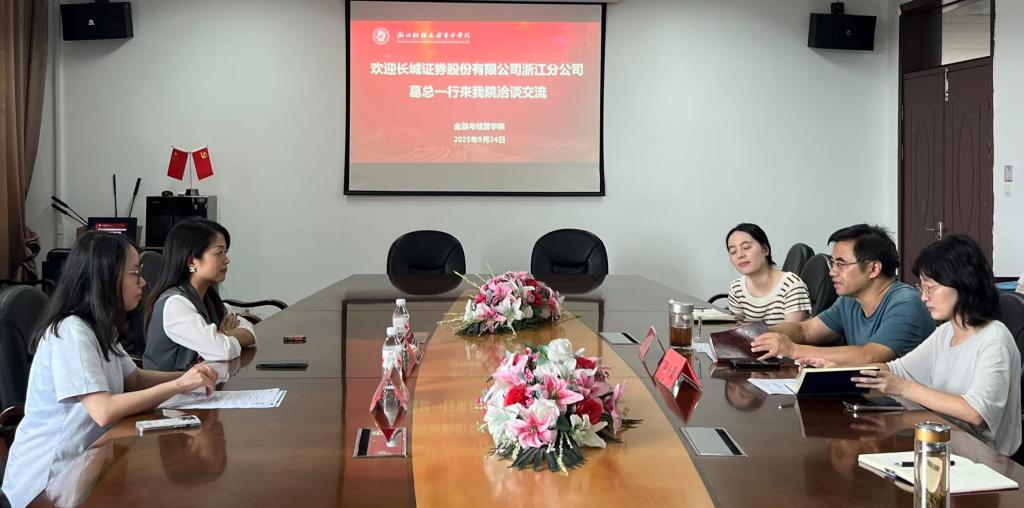李忠代表公司对长城证券浙江公司一行的到访表示热烈欢迎。在详细了解了证券公司的相关合作需求后,他希望能深化同长城证券的交流合作,共同探索产教融合育人新模式,共谋人才培养新机制,打造符合新时代发展要求的新财经人才高地。郭小蕾代表公司发出员工返校邀约。