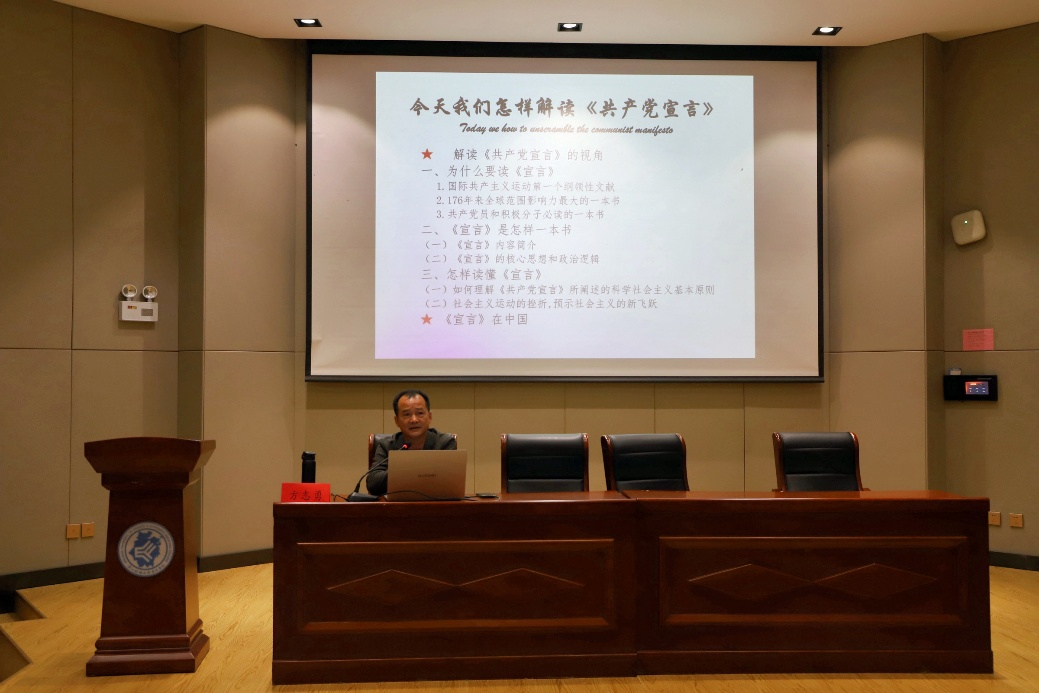 10月21日,公司党总支书记方志勇于3J101讲授《今天我们怎么解读共产党宣言》。