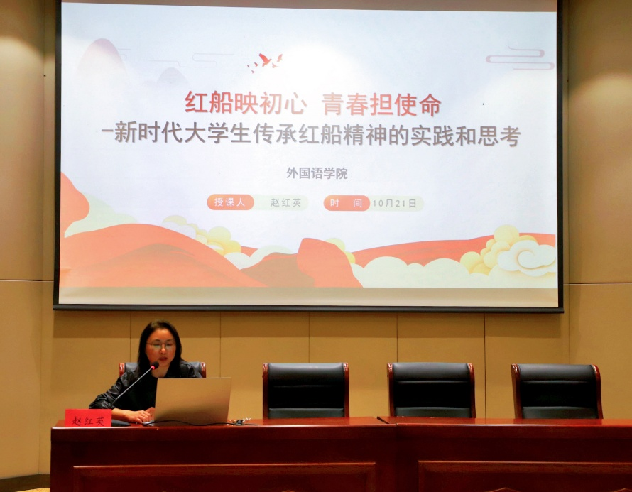10月21日,外国语公司党总支书记赵红英于3J101讲授《红船精神》的主题党课。
