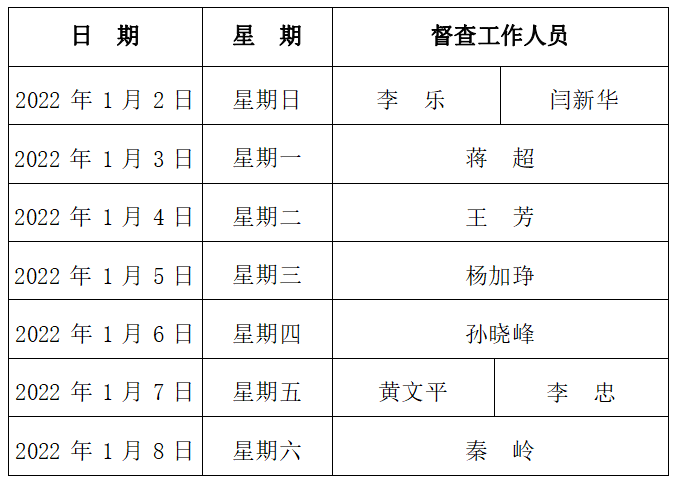 3044永利集团2021-2022学年第一学期(期末)考风考纪督查工作人员安排表