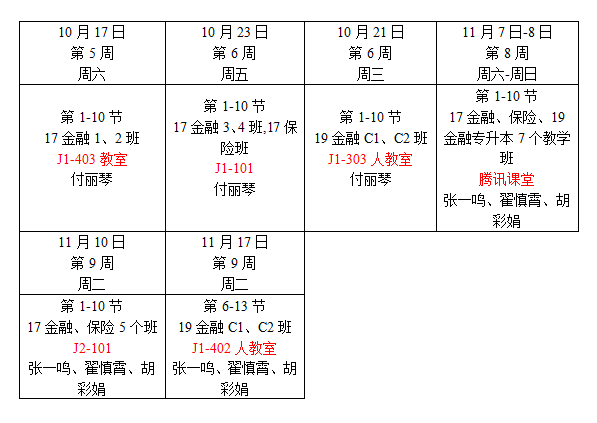 2017级金融学专业、2017级保险学专业、2019级金融学专业(专升本),综合实训1共2学分,50课时,教学内容为财务分析(含并购)、企业价值评估和论文指导。员工不停课,计划分3个阶段进行。第一阶段为线下教学,实训论文写作和资料检索;第二阶段为线上教学,7个行政班集体利用腾讯课堂上课,指导员工分析财务报表,做出价值评估并进行并购。第三阶段,线下教学,员工进行汇演。教学具体安排如下: