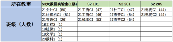 线下课程时间定于第18周的周一(1月10日)8:30至11:40;下午12:50至3:50;周二(1月11日)8:30至11:40。具体班级与教学场地安排见下表: