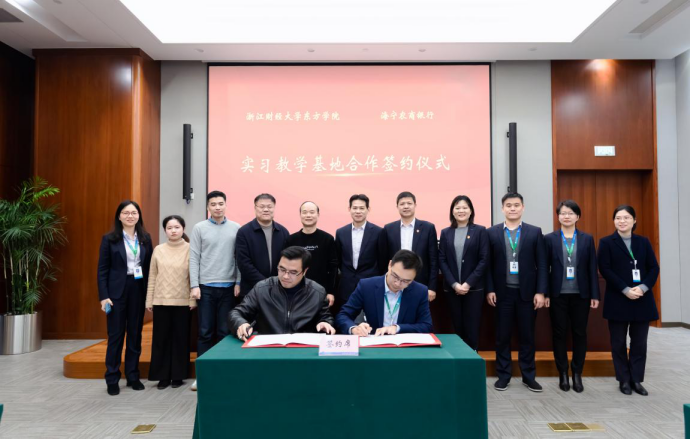 与海宁农商银行的实习教学基地签约仪式在海宁农商银行视频会议室举行。在介绍完双方的参会人员后,海宁农商银行党委书记、董事长闻渊作了海宁农商银行的情况介绍。闻董事长指出,海宁农商银行成立于2014年12月28日,前身是海宁农村信用合作联社,是海宁县域内历史最悠久、网点覆盖最齐全、支持实体最深入的金融机构。作为海宁自己的银行,海宁农商银行十分重视与东方公司的深入合作。