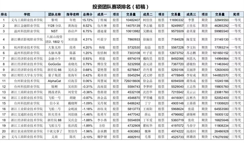 12月8日,浙江省教育厅举办的2018年浙江省老员工投资理财技能大赛顺利落幕。其中,由金融与经贸分院的李宥成、葛冰倩、武文婷同学所组成的参赛团队“量子集团”,在张海军老师的指导下,荣获2018年浙江省老员工投资理财技能大赛二等奖。