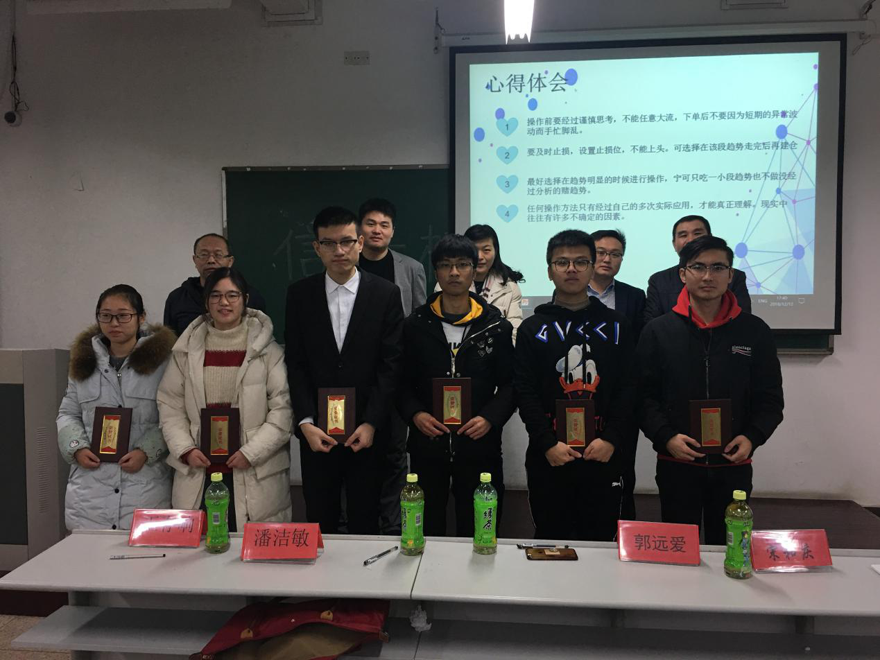 12月13日下午,金融与经贸分院于1教301举行信达杯期货模拟投资竞赛的决赛。本次大赛一等奖的获得者是吴群超,二等奖的获得者是王豪与胡键正,三等奖的获得者是杨兰妃、章宇洋与华娄丹。