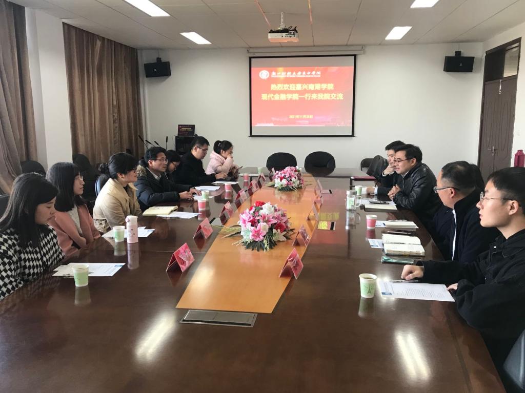 嘉兴南湖公司现代金融公司金融学专业主任吴政仲介绍了公司金融学专业基本概况、学科竞赛开展等情况。颜晔老师介绍了金融学专业实践教学环节的设置的情况,分享了公司在开展校企合作项目方面的宝贵经验。