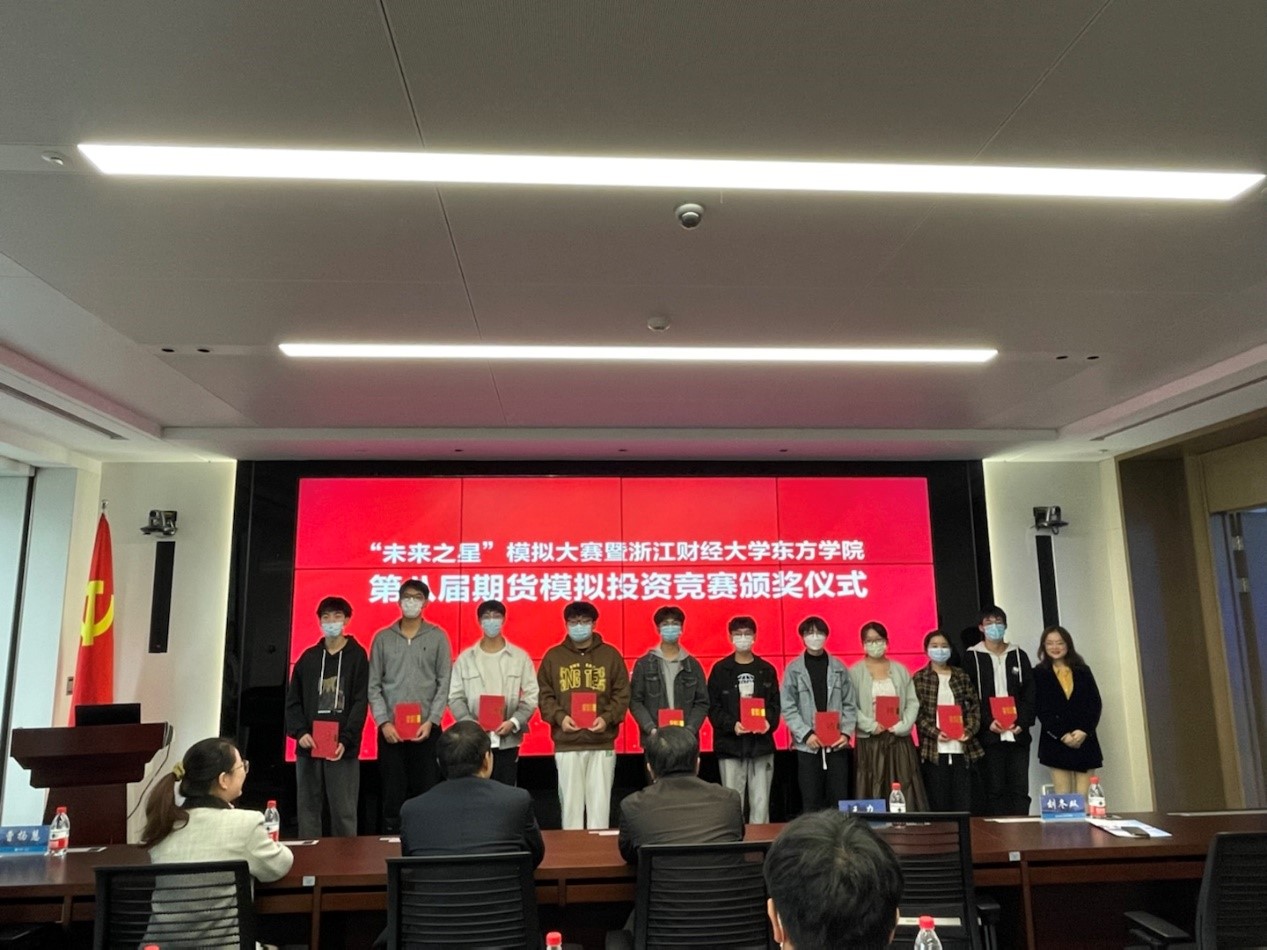 与此同时,浙江财经大学东方第八届期货模拟投资竞赛颁奖仪式,也圆满完成,校企合作的领导们共同给该届获奖的同学们颁发了特等奖,一等奖,二等奖和三等奖,气氛热烈。