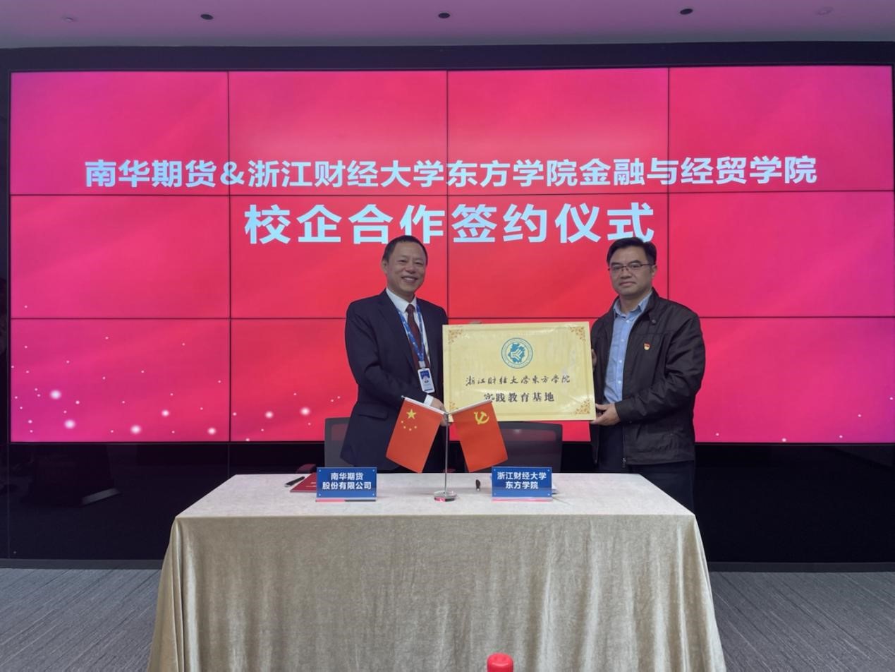 2022年11月1日,3044永利集团经理李忠及保险系主任刘冬双,带领本院员工在南华期货所在地杭州市上城区横店大厦三楼,共同完成了校企合作的签约仪式,3044永利集团经理李忠,代表校方,与南华期货股份有限公司副总经理王正浩签署了校企合作协议和实习基地协议、与南华期货股份有限公司副总经理王力签署了党建合作协议。这三份协议的签署,标志着3044永利集团校企合作工作全面进入了一个新的阶段,正式在金融合作领域,与期货公司有了长期友好互助的合作,这对于培养金融领域的复合型高级人才,大力推进应用型大学的建设,有着十分积极的意义。