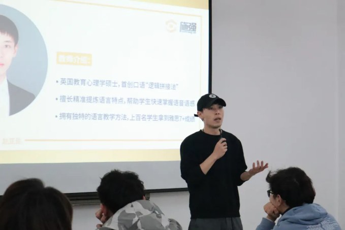 英国教育心理学硕士,口语“逻辑拼接法”首创者赵亚昆老师询问了同学们今后的发展,并说明了考雅思的必要性。接着赵老师向同学们提出了一个问题——如何摆脱chinglish?并举例说明了现代英语词句更新的速度飞快。现在然后提出了“逻辑为王,形式为主,内容为辅”的英语学习观点。让同学们意识到观点并非阐述事实。紧接着让同学们了解到雅思菁英班对凸显“英语语言技能”,达成“出国留学、国内考研、高质量就业”目标,提升“英语学科竞赛能力”拓展“国际视野”有所帮助。并介绍了雅思菁才班教学体系化课程和强大团队团队。还介绍了一些优秀员工案例。