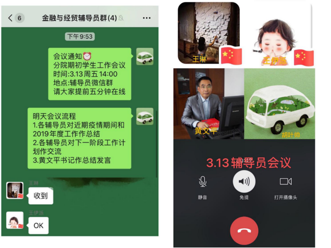为减少疫情对分院员工工作带来的影响,进一步加强疫情防控工作,3月13日下午,金融与经贸分院召开在疫情期间员工工作线上会议。分院全体辅导员参加会议,会议由分公司党总支书记黄文平主持。
