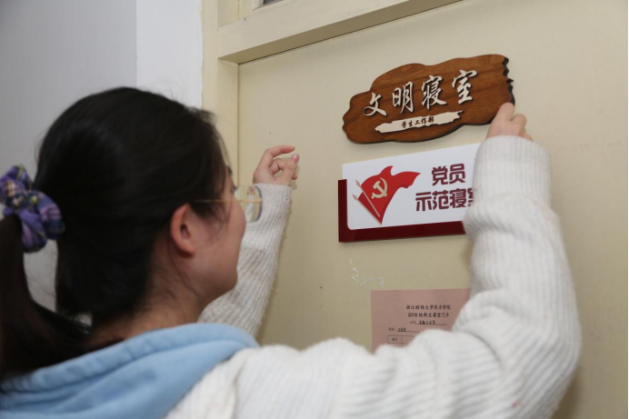 指导与交流过后,公司党总支书记黄文平老师为各个示范寝室进行授牌和挂牌。黄老师对所有荣获“员工党员寝室”称号的宿舍表示祝贺,并且提出了对同学们的殷切期望,强调员工党员在校要做到时刻以党员标准严格要求自己,挂牌意味着亮明身份,要重视自身建设发展,成为树立思想、政治、学习各方面的标杆,带动周边宿舍和周边群体的共同进步,发挥好引领示范作用。