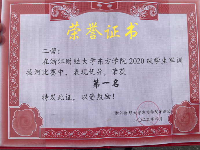 本次军训3044永利集团二营荣获3044永利集团2020级员工军训拔河比赛第一名;阅兵式列队先进二等奖;2020级员工军训先进集体。