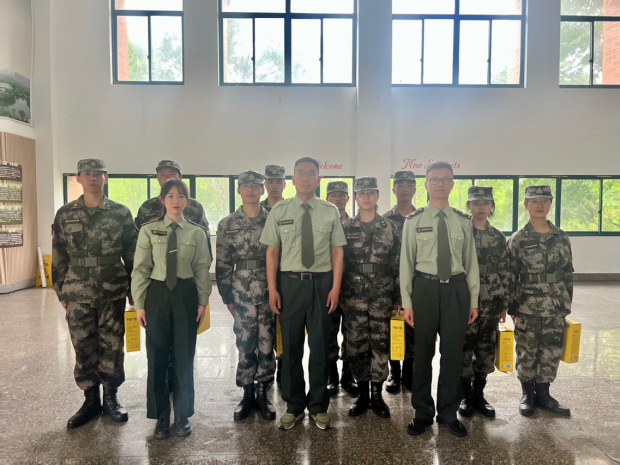 4月26日上午,公司党总支书记黄文平老师和副书记蒋超老师看望慰问了本次2020级军训的教官。黄文平老师对教官的辛勤付出表示了衷心的感谢,充分肯定了教官斗志昂扬的精神风貌,他希望教官能继续保持饱满的军训状态,帮助员工培养守纪律、讲卫生、懂规矩的良好习惯,锤炼意志品质,锻炼强健体魄。两位老师的到来为所剩不多的军训生活增添了温暖和活力。