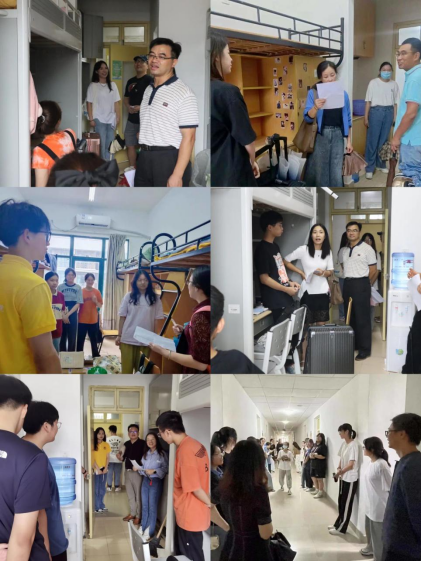 公司领导、各系主任、新生专业导师、新生辅导员以及新生班助走访新生宿舍,亲切的与新生交谈,谈及他们的宿舍生活,给予关怀,帮助他们更好的适应新环境新生活。