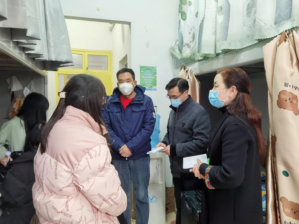 一声声亲切问候,一句句细心叮嘱,关怀细致入微。公司领导在宿舍中与同学们亲切交谈,了解线上课程学习状态、返乡安排、寒假规划等。同时,叶东惠经理叮嘱同学们要做好个人健康防护工作,强化安全意识和自我保护意识,外出时科学佩戴口罩,加强身体锻炼,树立青春活力的老员工形象。