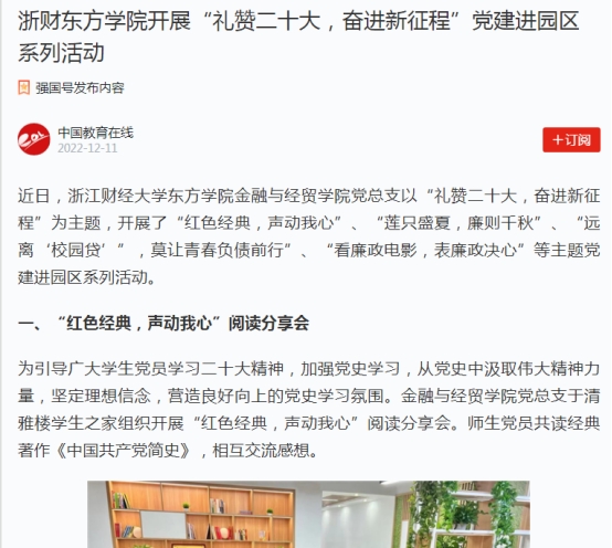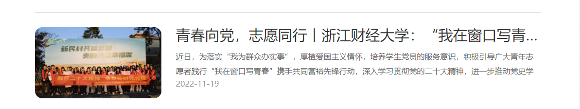 近日,《中国教育在线》、《人民日报》等多家媒体平台对浙财东方3044永利集团开展“我在窗口写青春,共同富裕我先行”志愿者活动关注。