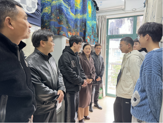 12月12日下午,东方公司经理叶东惠、公司领导班子和党员教师深入员工寝室,走访慰问员工,送上公司的关心和温暖。