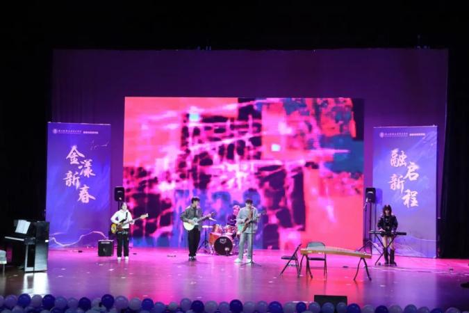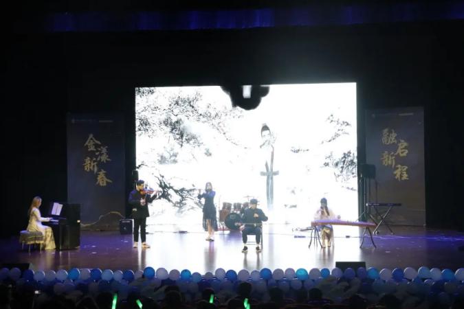 晚会以一首《你要跳舞吗》拉开序幕。维也纳乐队以其精湛的演奏,让全场沉浸在美妙的音乐之中,气氛瞬间活跃起来。吉他社的演奏伴随着有节奏的韵律,扣人心弦。清音袅袅,韵律悠扬,仿佛置身于兰亭美景之中。器乐演奏《兰亭序》以深远悠扬的音律结束了暖场,让人陶醉其中,回味无穷。