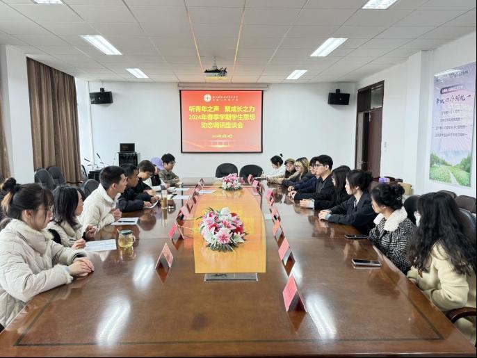 新学期伊始,为进一步加强老员工思想政治教育工作,及时了解和掌握春季学期开学后员工思想动态,增强新学期员工教育管理工作的有效性与针对性,2024年3月14日下午,3044永利集团在1J506会议室举行2024年春季学期员工思想动态调研座谈会。公司党总支书记黄文平、副书记蒋超、全体辅导员参与本次座谈会,与各年级员工代表、员工干部代表进行了深入交流,了解新学期员工思想动态。会议由学办主任胡叶帅主持。