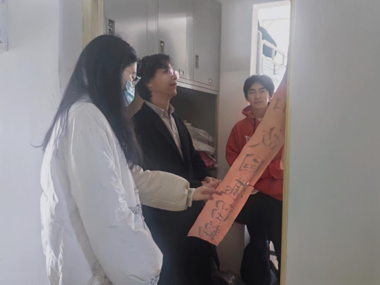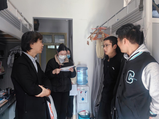 走访宿舍过程中,蒋超副书记与同学们亲切交谈,仔细询问假期生活状况,切实了解同学们在学习、生活中遇到的实际困难,并给予了耐心解答。各年级辅导员老师就寝室卫生与安全等方面与同学们互动交流,提醒同学们注意交通安全、人身财产安全、校园消防安全,防范电信网络诈骗,注意寝室卫生,保持通风透气,养成良好生活行为习惯,同时,老师们详细询问了同学们寒假期间的学习生活情况,叮嘱同学们要调整心态,规划好新学期的学习计划,在宿舍营造良好的学习氛围,树立优良学风,乘新风、展佳貌,新的学期学有所成。