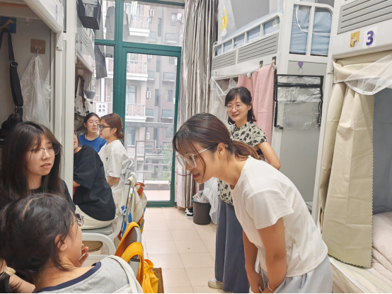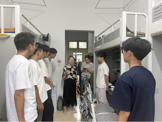 走访过程中,从简约实用的收纳技巧到安全规范的用电提醒,从“五湖四海”的文化特点到“互帮互助”的寝室氛围,老师们分享了自己的经验,并建议新生通过合理规划、创意装饰,将寝室打造成兼具学习氛围与生活温度的第二个家。同时,强调了寝室安全的重要性,倡导绿色、健康、和谐的装饰理念,鼓励同学们发挥集体智慧,通过合作布置增进室友情谊,共同营造整洁有序、富有朝气的住宿环境。一句让寝室因你们而美丽的暖心话语,让新生们感受到公司对生活细节的关怀,更激发了大家着手打造“新家”的热情。